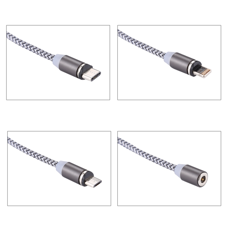 1.05m 8 Pin + Micro USB + USB-C / Type-C to USB Weave Data Sync Charging Cable with LED Indicator