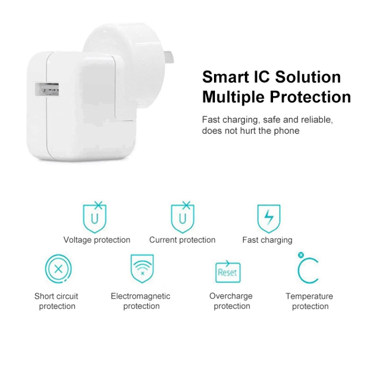 12W USB Charger + USB to 8 Pin Data Cable for iPad / iPhone / iPod Series, AU Plug