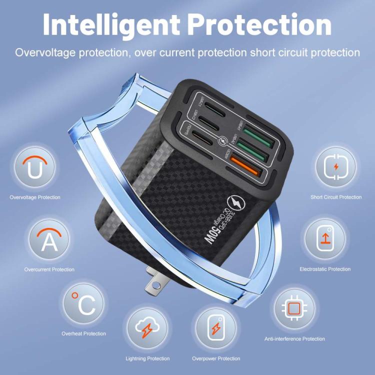 50W 3USB+3Type-C 6 Ports Fast Charging Cell Phone Charger, EU Plug (Black), EU Plug (White), EU Plug (Yellow), US Plug (Black), US Plug (White), US Plug (Yellow), UK Plug (Black), UK Plug (White), UK Plug (Yellow)