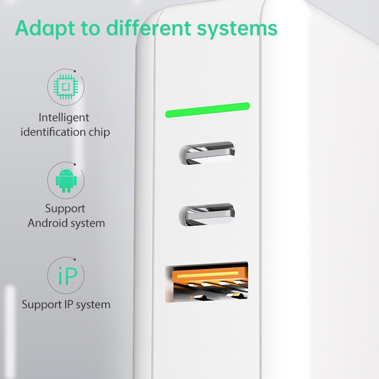 65W USB Ports x 1 + Type-C Port x 2 GaN Portable Mini Fast Charger Travel Charger with UK & US & EU Plug Set