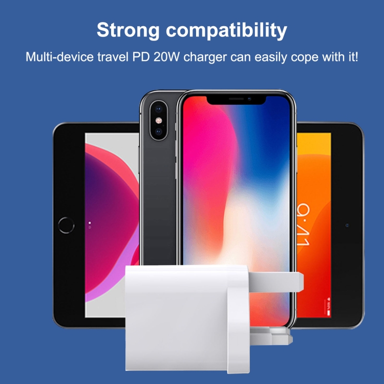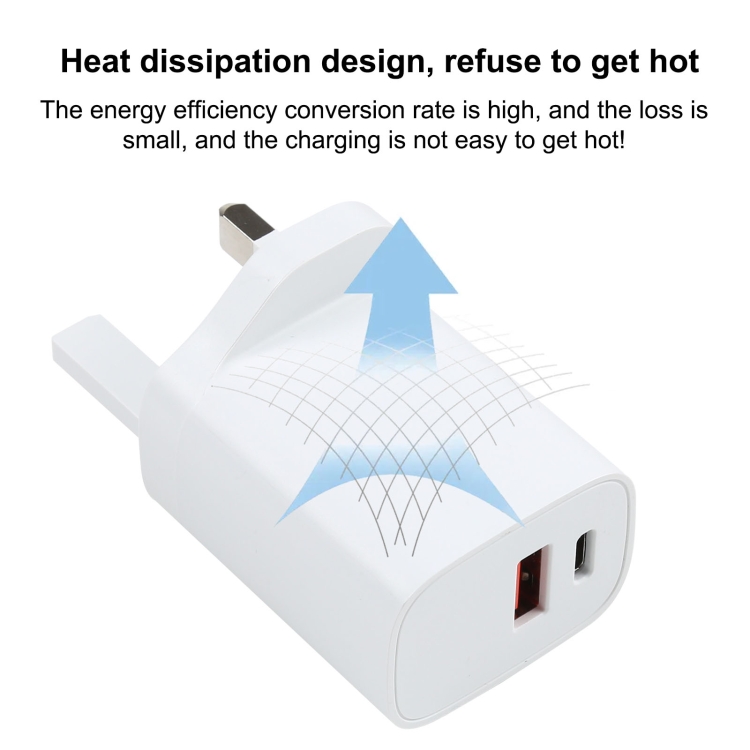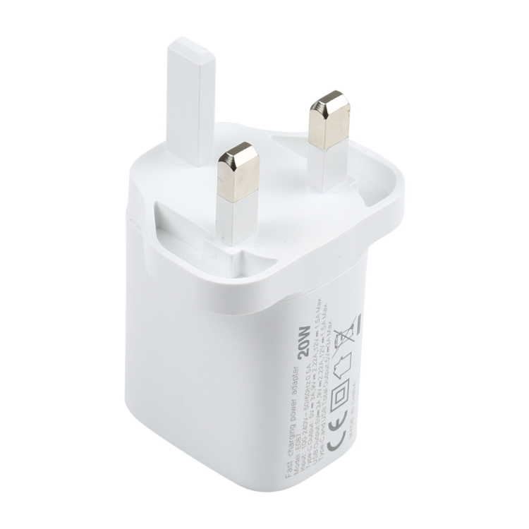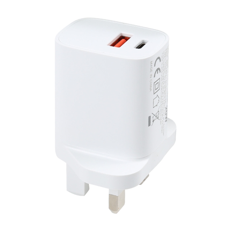 E087 20W USB-C / Type-C + USB Ports Fast Charging Travel Charger, UK Plug