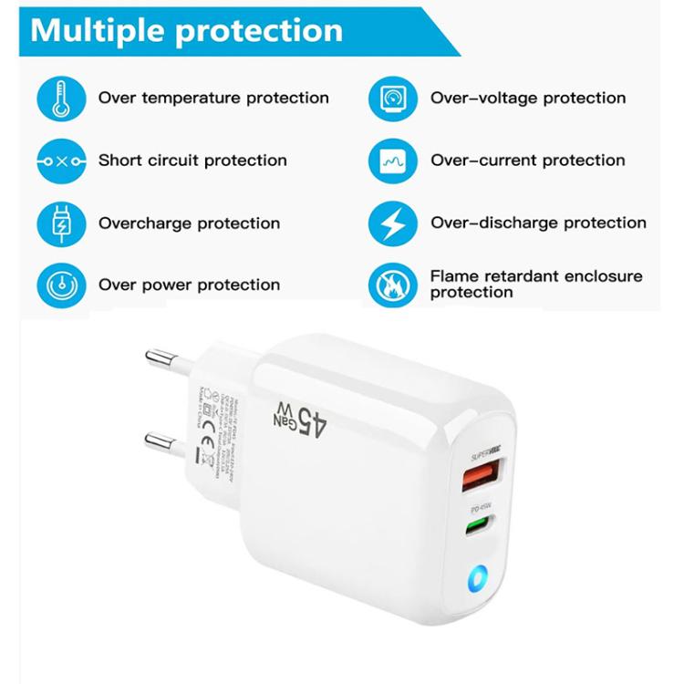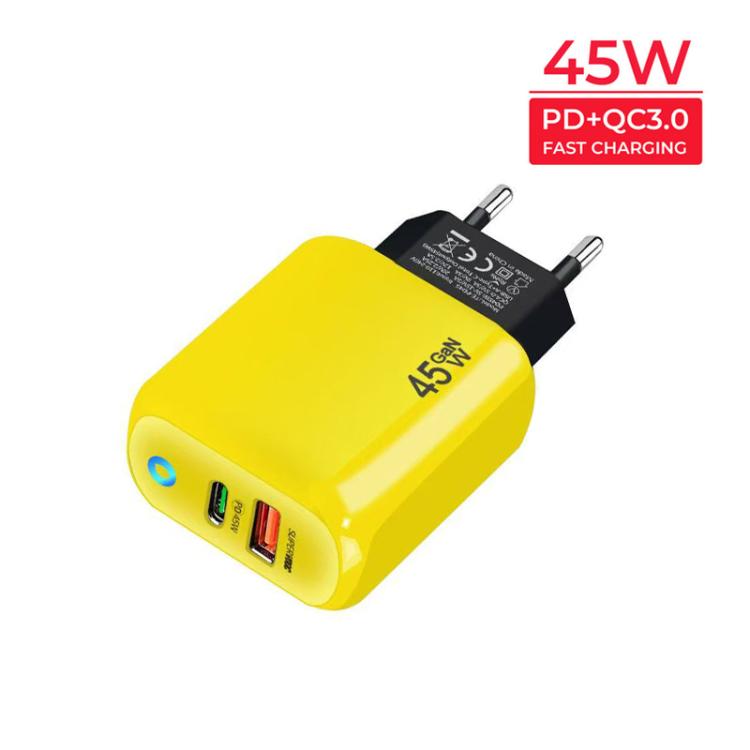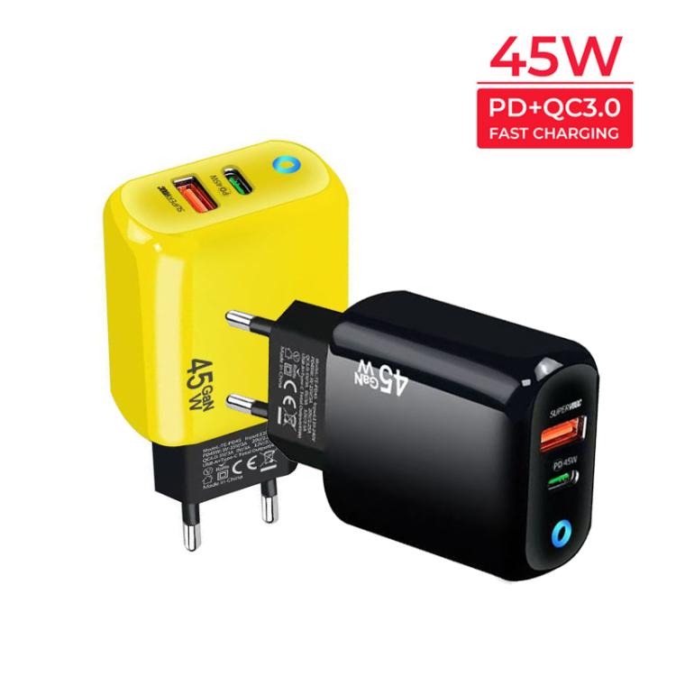 GaN 45W PD3.0 + QC3.0 Fully Compatible Protocol Charger for Laptops / Tablets,EU Plug, EU Plug