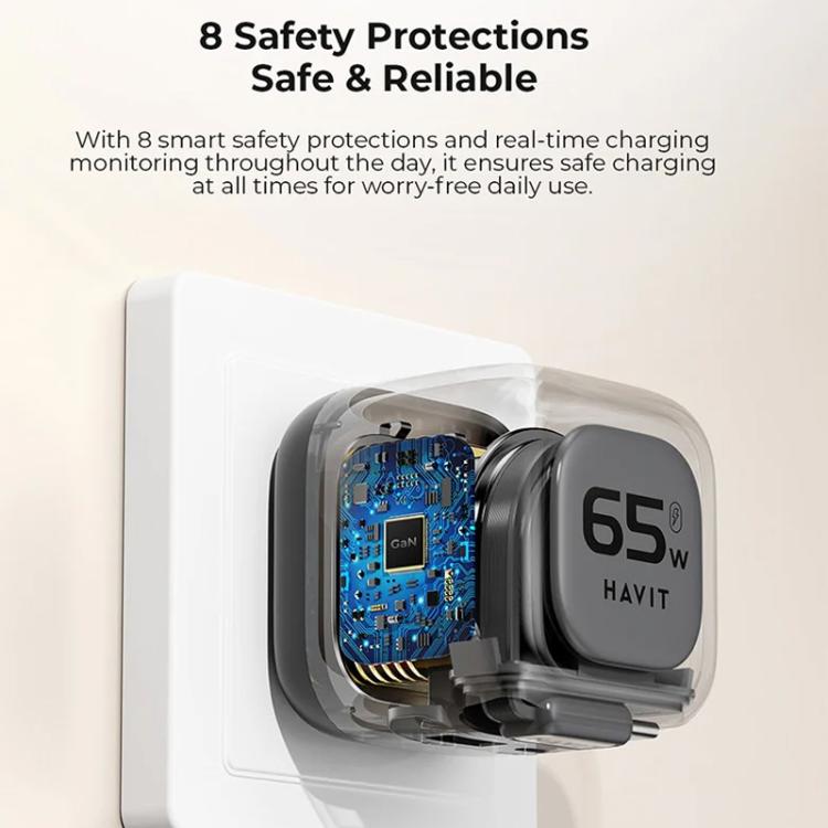 Havit UC252 65W 3 in 1 GaN Travel Charger with Type-C Retractable Cable, UC252(EU Plug), UC252(US Plug)