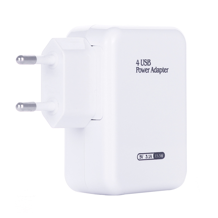 HT-CD03 15.5W 5V 3.1A 4-Port USB Wall Charger Travel Charger, EU Plug, HT-CD03