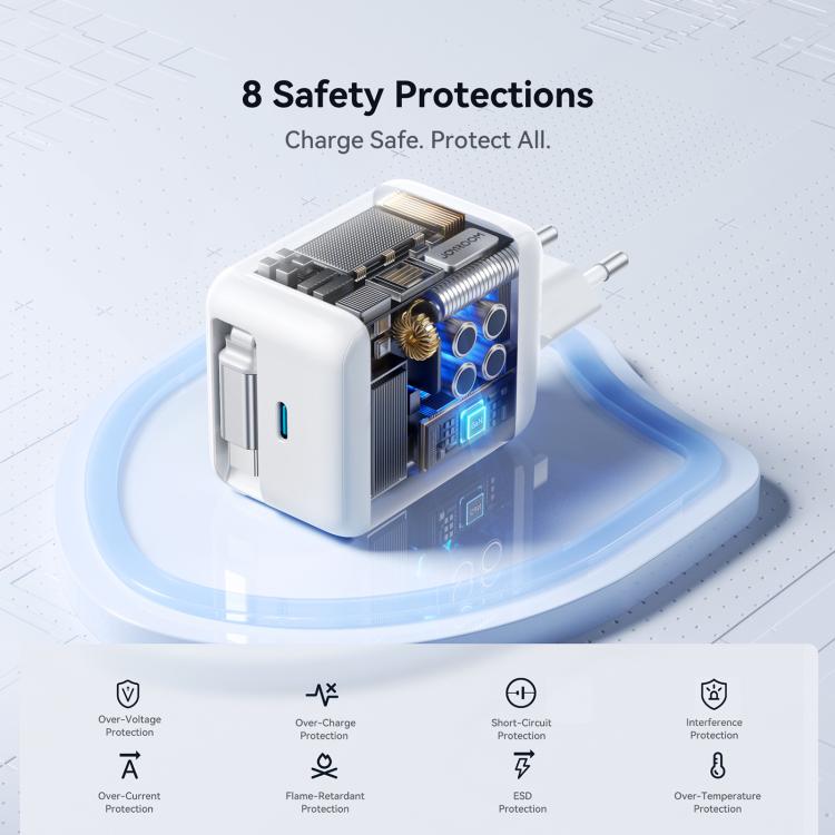 JOYROOM JR-TCL06 67W USB-C / Type-C Port GaN Fast Charger with Retractable Cable, EU Plug, UK Plug