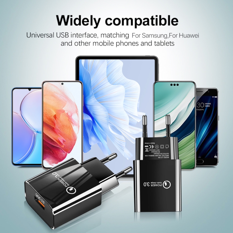 Mini QC3.0 USB 18W Mobile Phone Tablet Universal Fast Charger, EU Plug, EU Plug