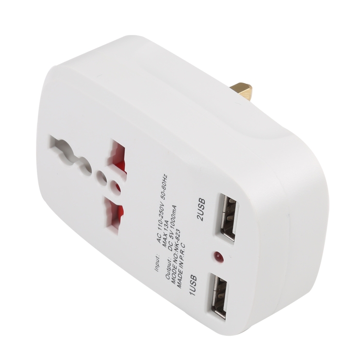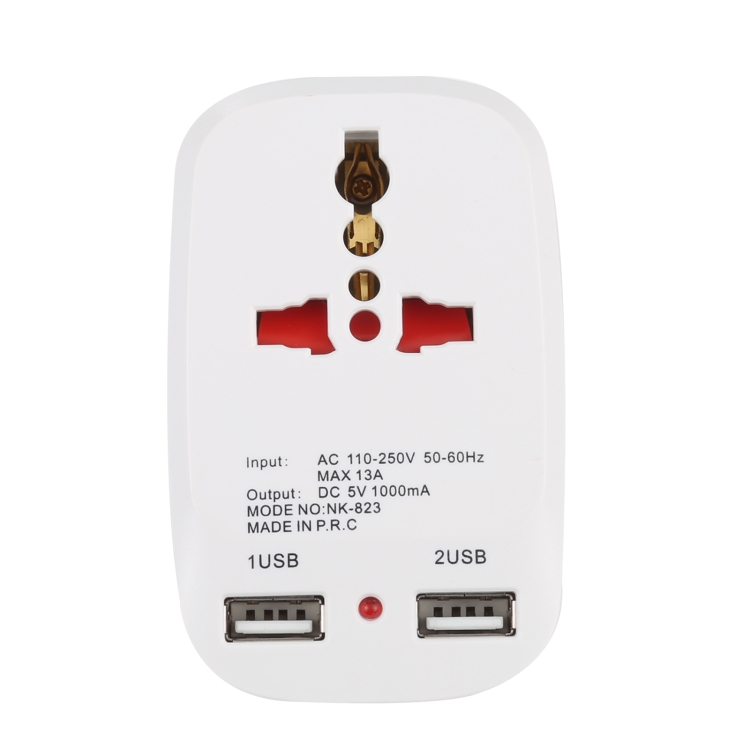 NK-823 2000W Dual USB Travel Charger Power Adapter Socket, UK Plug