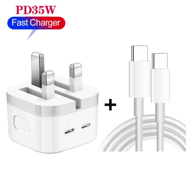 PD 35W Dual USB-C / Type-C Ports Charger with Type-C to Type-C Data Cable, UK Plug, UK Plug + 1m Dual Type-C Cable, UK Plug + 2m Dual Type-C Cable