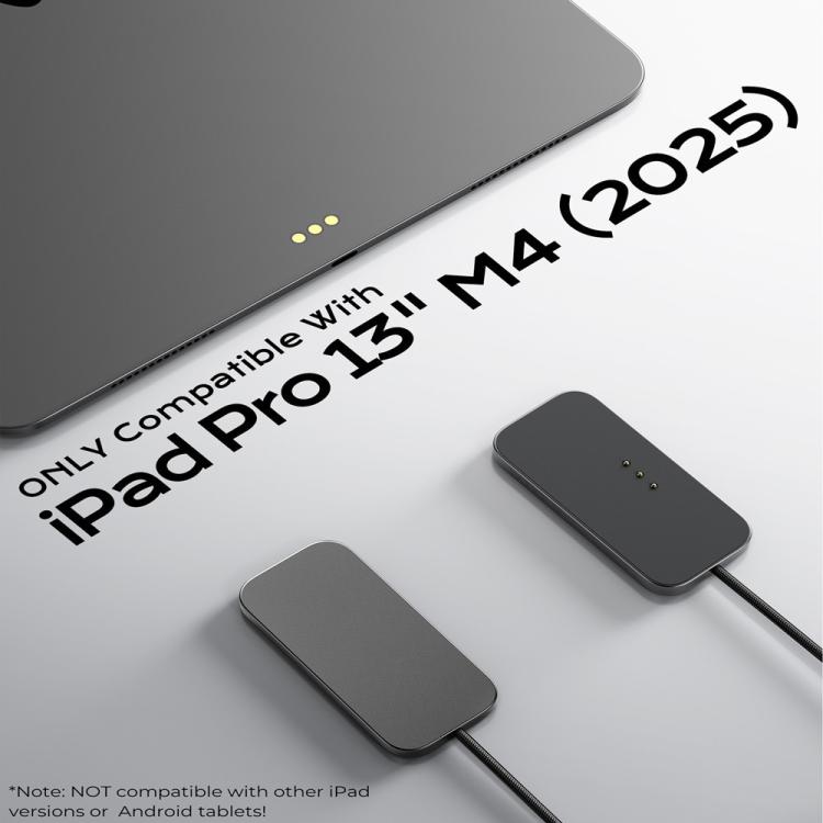 1. Compatibility: This magnetic charger is compatible with iPad Pro 13 M4(2025). Important note: 1) Not compatible with other iPad models or Android tablets. 2) Please verify compatibility before placing an order to ensure that the correct model is selected for a perfect fit and optimal performance