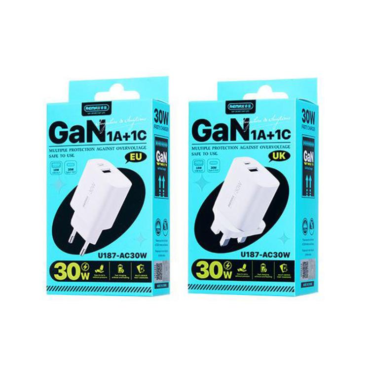 REMAX U187-AC 20W USB and Type-C GaN Fast Charger, EU Plug, UK Plug