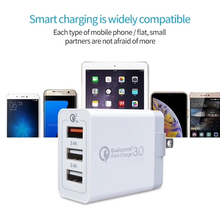 SDC-30W 2 in 1 USB to 8 Pin Data Cable + 30W QC 3.0 USB + 2.4A Dual USB 2.0 Ports Mobile Phone Tablet PC Universal Quick Charger Travel Charger Set, US Plug