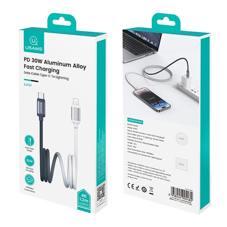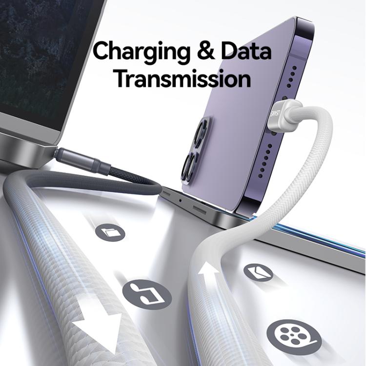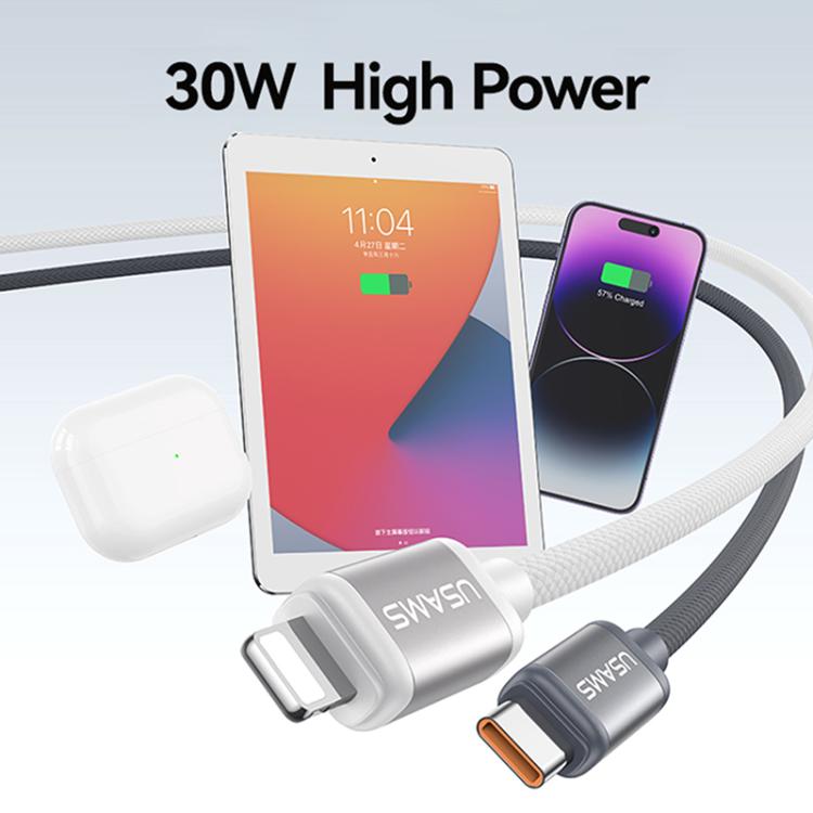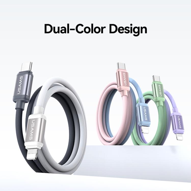 USAMS SJ757 30W Type-C to 8 Pin Dual Color Aluminum Alloy Fast Charging Data Cable, Type-C to 8 Pin