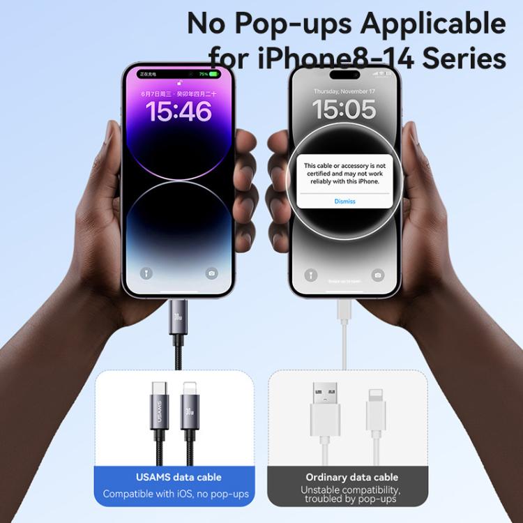 USAMS SJ770 U91 30W Type-C to 8 Pin Aluminum Alloy Fast Charging Data Cable, Length: 1m, SJ770