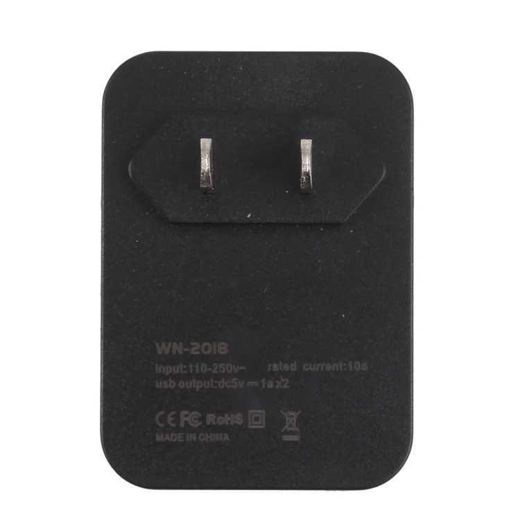 WN-2018 Dual USB Travel Charger Power Adapter Socket, US Plug