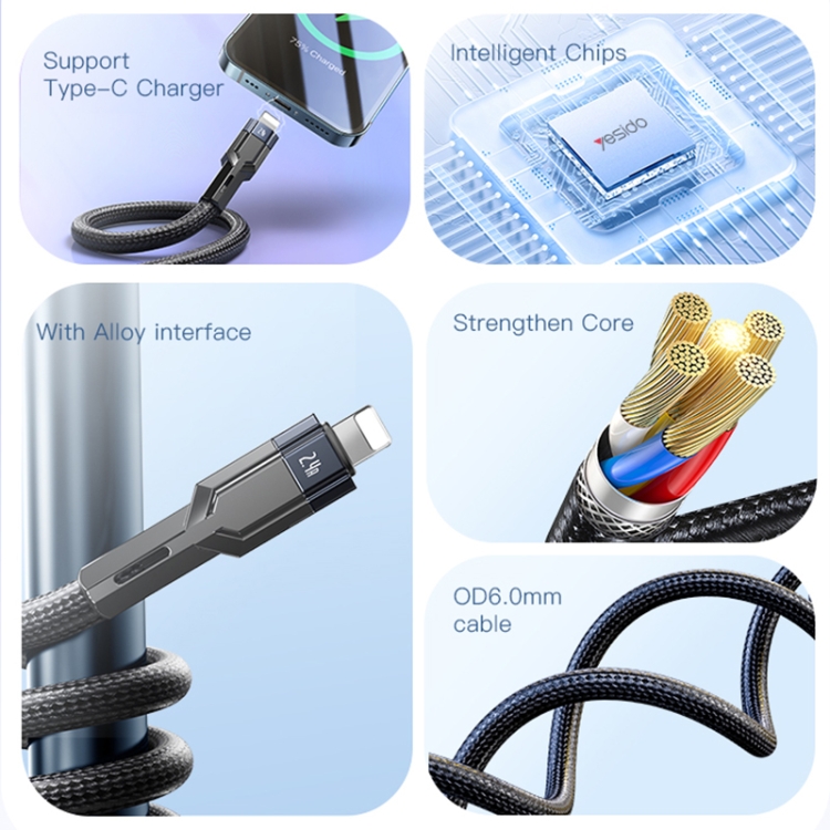 YESIDO CA107 1.2m 2.4A USB-C / Type-C to 8 Pin OD0.6 Charging Data Cable, CA107