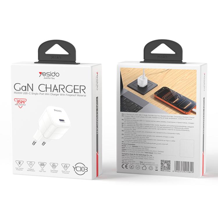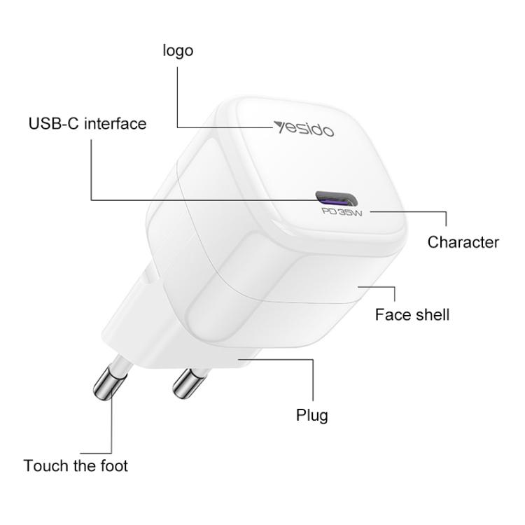 Yesido YC103 PD 35W Type-C Mini Ice Cube Fast Charger, EU Plug